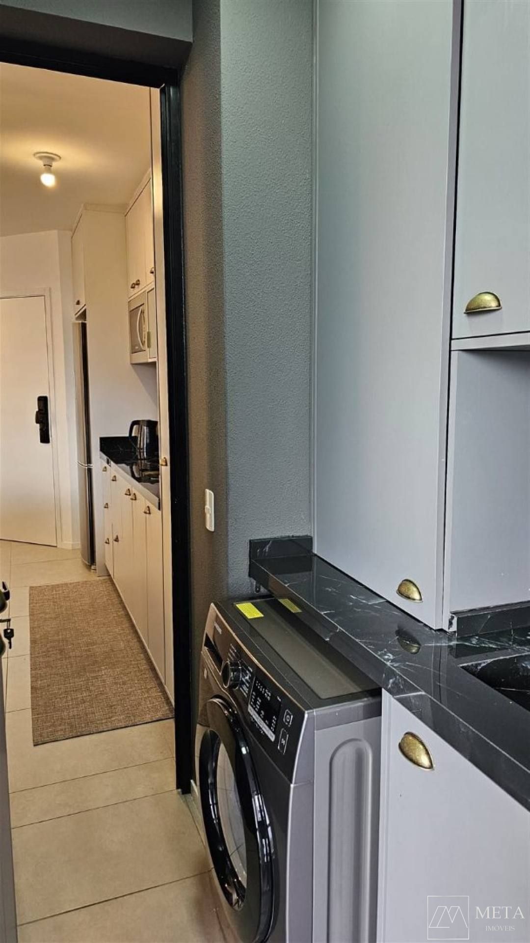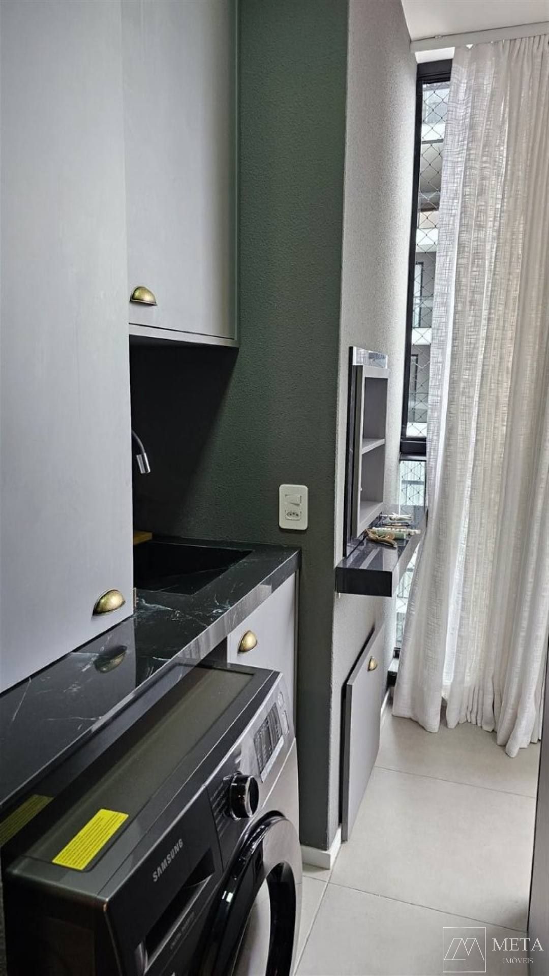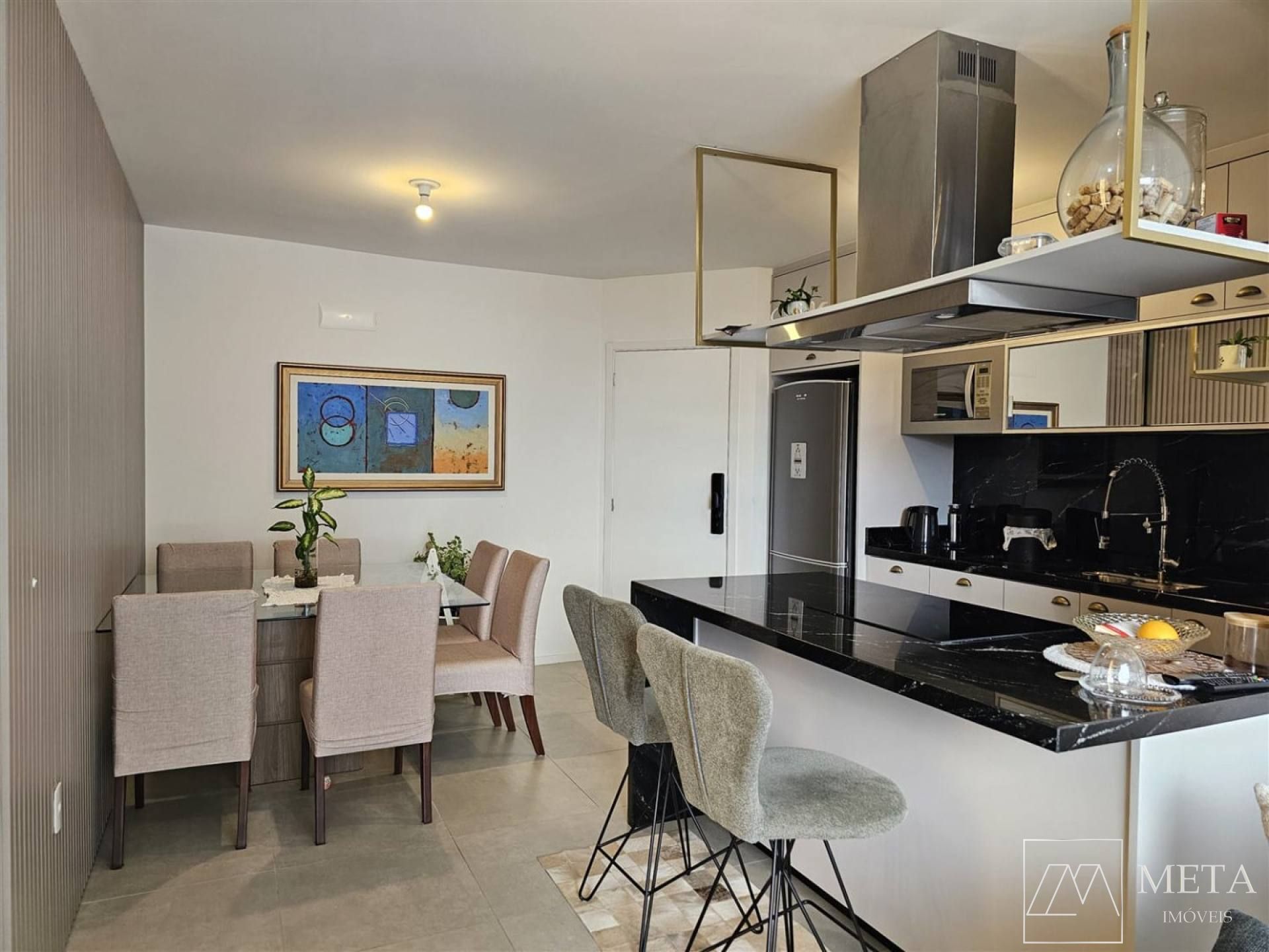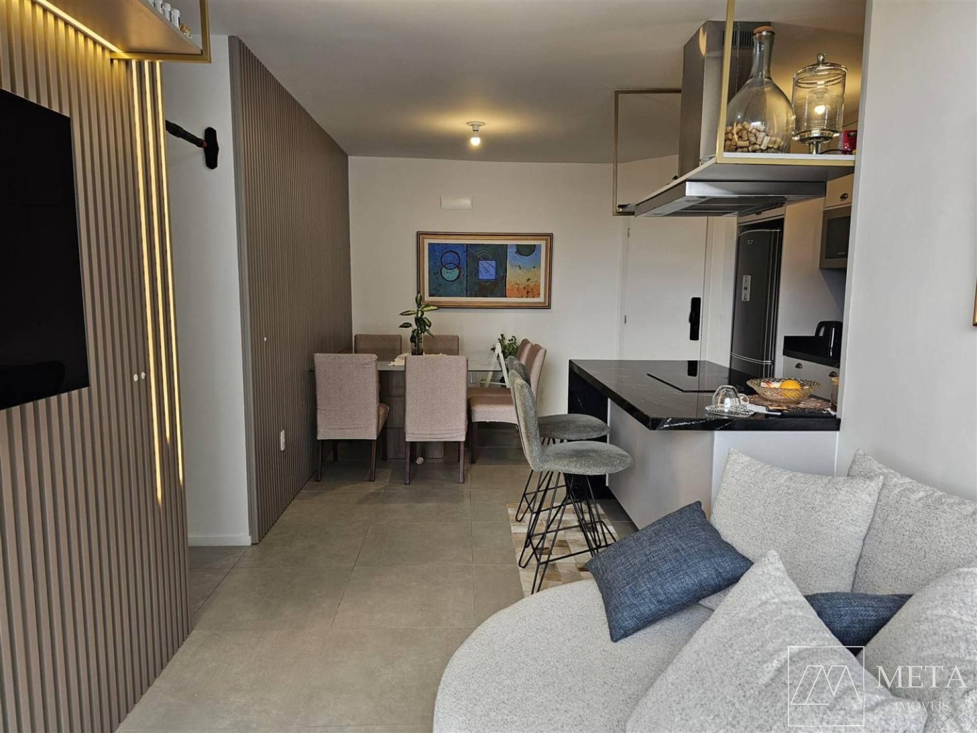 Ambientes integrados: sala, cozinha e área de serviço