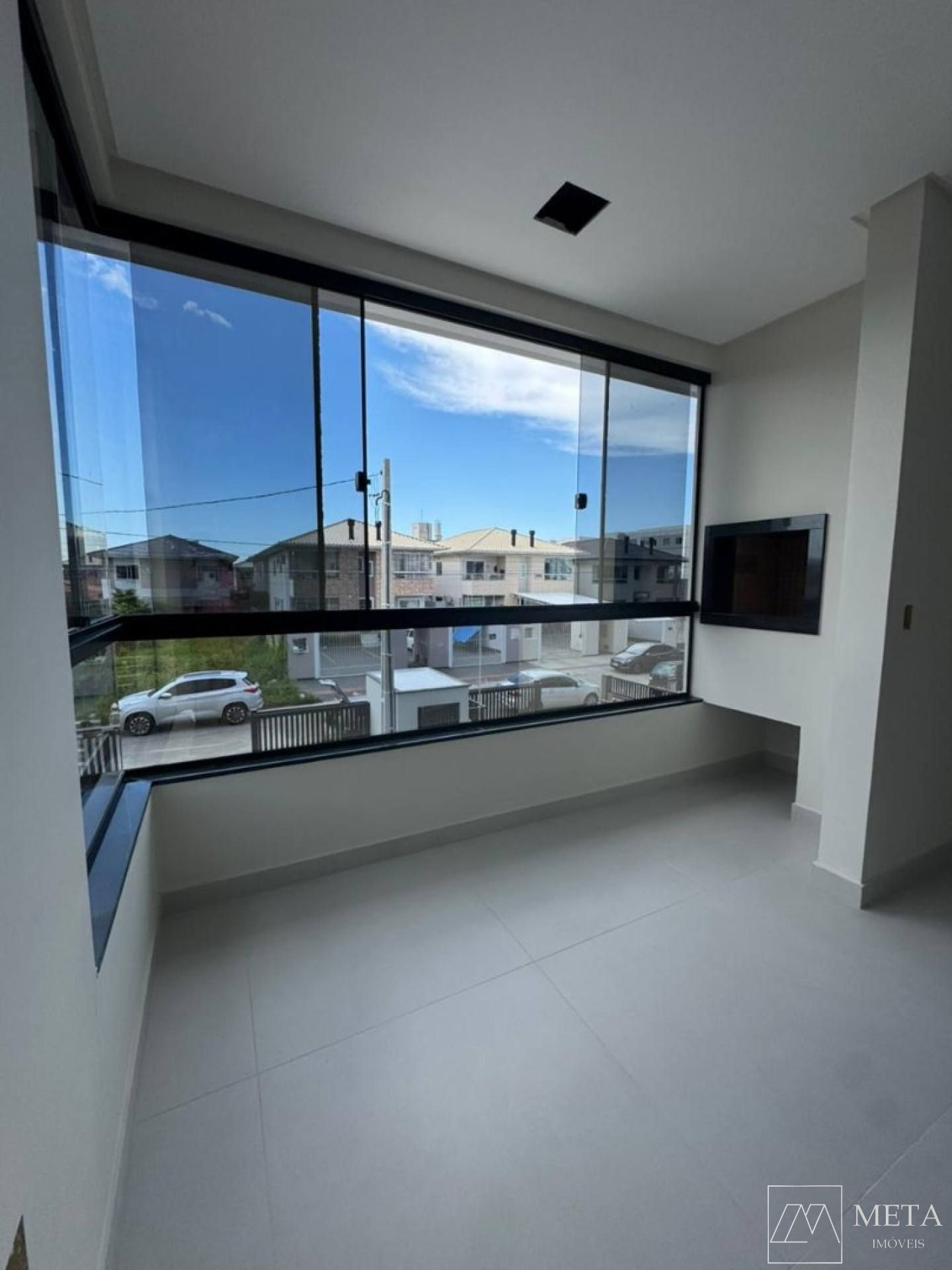 • Sacada fechada em vidro refletivo integrada à sala
